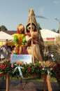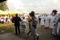 na ręce kapłana dary. Tuż po nabożeństwie prowadzący powitał w imieniu Pana Wójta wszystkich gości, a w tym samym czasie mieszkańcy przygotowywali się do obrzędu dożynkowego. Podczas prezentacji mieszkańcy wraz z Kołem Gospodyń Wiejskich śpiewali, recytowali wiersze oraz zaprezentowali prace polowe zwieńczone zbiorem plonów i wypiekiem chleba. W czasie inscenizacji przekazali oni starostom dożynkowym upleciony snop zboża i chleb. Zaprosili także starostów do wspólnego tańca podczas obrzędu. Wszyscy zgromadzeni na placu z zaciekawieniem przyglądali się występowi, który został nagrodzony brawami. Na wielu twarzach widać było radość, gdyż obrzęd dożynkowy to liczne przyśpiewki i humorystyczne wierszyki nawiązujące do prac polowych i mieszkańców wsi.